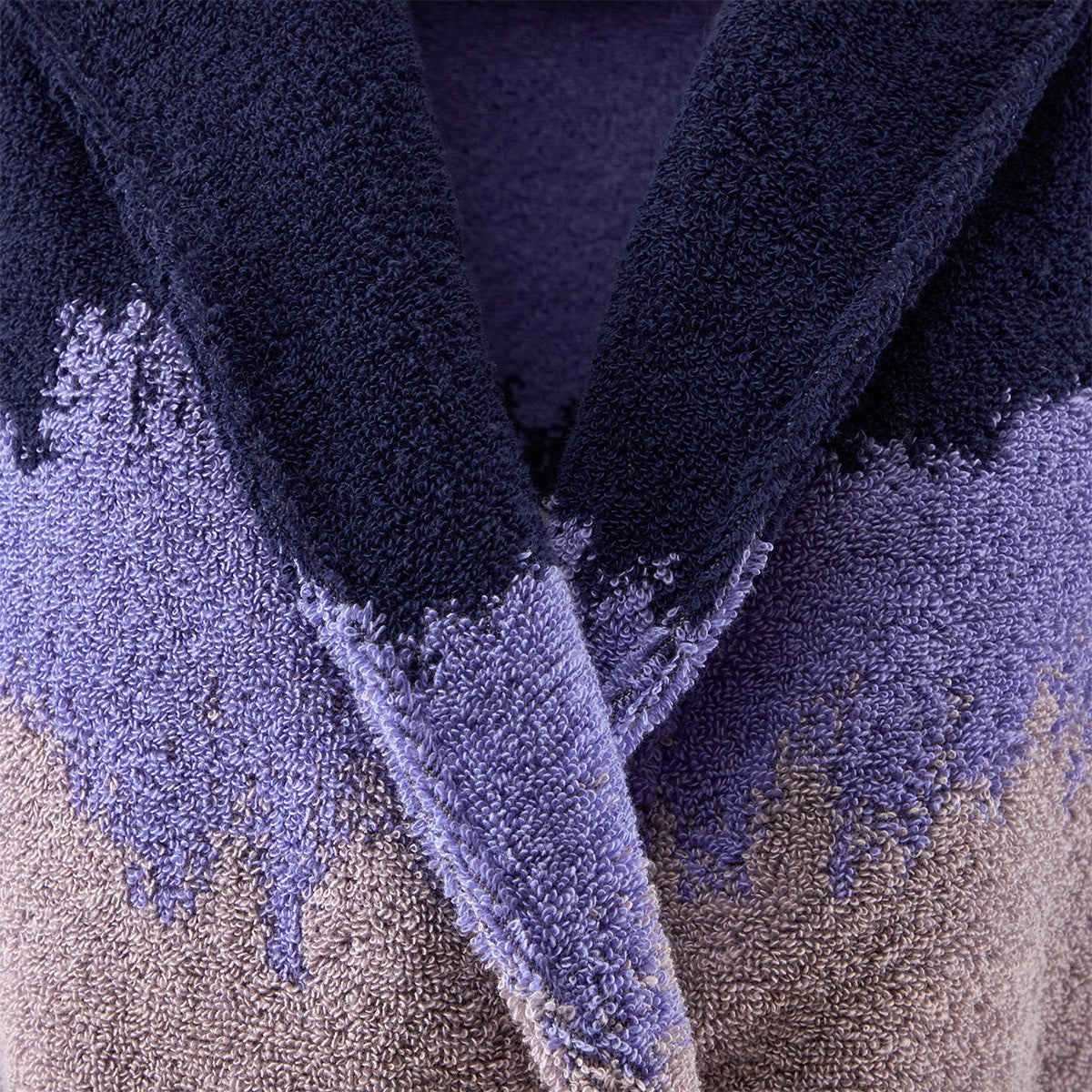 • Jacquard bathrobe with tailored collar, inside pockets and belt.